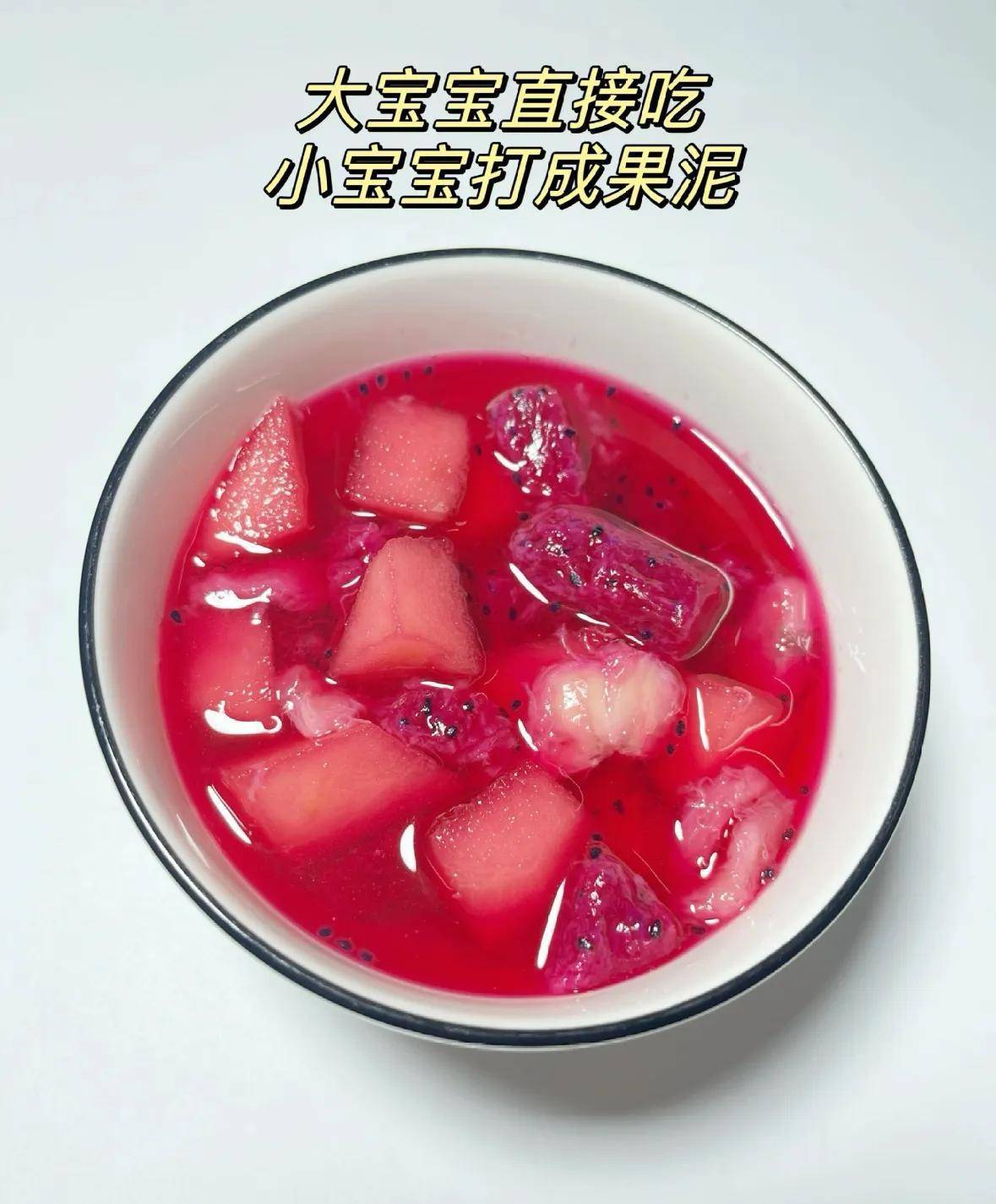 后来我才知晓,这三种水果搭配是“通便黄金组合”:火龙果的籽能刺激肠道蠕动,熟透的香蕉含果胶能软化大便,苹果皮的膳食纤维能帮肠道“推”着大便走,比单独吃一种水果管用得多。而且都是天然食材,比吃药安全,娃也喜爱这种甜甜的味道,不用追着喂。