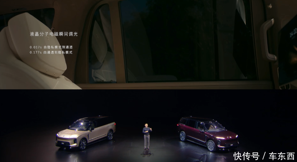 隐私防护方面,车辆玻璃可以自动调光,仅仅通过玻璃颜色的变化就能完成车辆后排隐私保护。