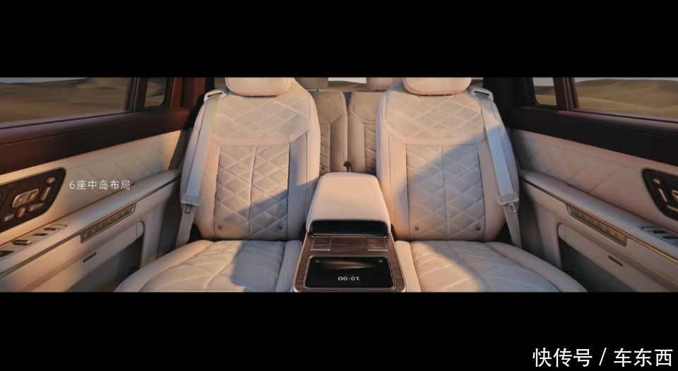 车辆还做了一些非常有意思的设计,比如说有一个磁吸茶具,可以放置在行政中岛上;车辆还有专属的车载视频会议系统;车载原生飞书APP;第三排还有对讲功能,可以和第一排乘客对讲。