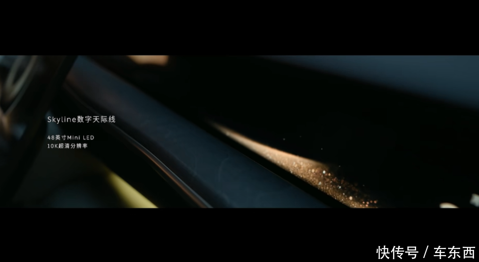 车辆采用了数字天际线屏幕,采用了48英寸的Mini LED屏,中控屏尺寸为15.6英寸,后排有两块16英寸的专属屏幕。