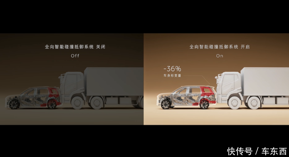 主动安全方面,车辆主动安全系统可以有效避免道路上的碰撞事故。在车辆碰撞无法避免的情况下,车辆会自动抬高车身,降低车身的碰撞形变。