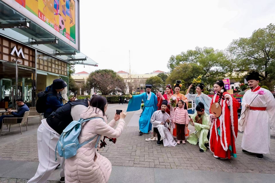 贯穿花朝节期间的周末演出日历更是精彩纷呈,传统与潮流在此碰撞交融。3月14日,造梦马车剧团以高跷戏剧巡游《梦唐录》拉开序幕,带观众梦回大唐气象;3月15日,“贺花神”国风巡游华丽登场,八位华服花神穿行街巷,衣袖翩跹,宛若从古画中走出;3月21日,申田由甲·手碟乐团在花海间奏响空灵之音,重构流行经典;3月22日,KPOP热曲轮番炸场,点燃春日活力;3月28日,静安区“城市美育日”主题活动将商业空间转化为艺术阵地;3月29日,青年演奏家们将以一场专业室内乐音乐会,让《花之圆舞曲》等经典旋律与都市春光完美和鸣。此外,3月28日至29日,中外家庭戏剧大赛复赛展演也将生活里的温馨故事搬上舞台。
