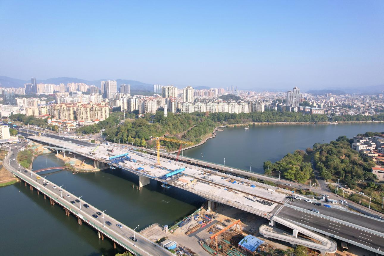 国道G324线雁塔大桥左幅主桥合龙段合龙。