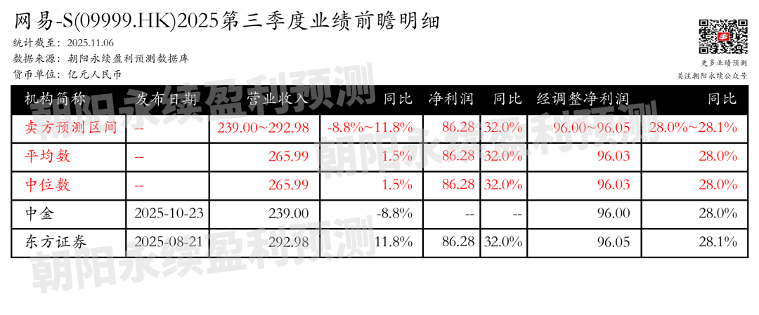 ]article_adlist-->2. 网易-S第三季度业绩预期怎么样? ]article_adlist-->截至2025年11月07日,根据朝阳永续季度业绩前瞻数据: